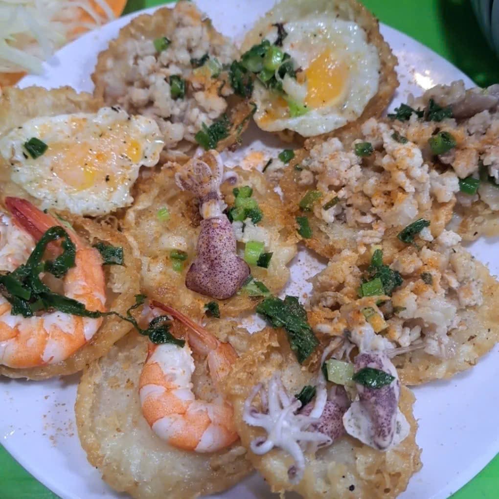 ドラゴン橋を眺めるのに最適な場所に向かう途中、ツアーガイドは名物屋台に立ち寄り、グループをダナン名物料理に招待します。